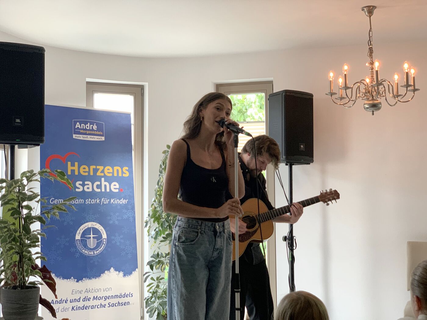 Am Sonntag, den 26. Mai 2024, fand bei Claudia zu Hause ein besonderes Event statt: ein exklusives Wohnzimmerkonzert mit der Sängerin Leony. Claudia hatte dieses Erlebnis ersteigert, und der Erlös von 5.500 Euro ging an die Kinder der Kinderarche Sachsen.